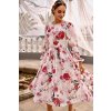 Tieto úžasné kvetinové midi šaty Vám padnú do oka na prvý pohľad. Výrazný kvetinový vzor sa krásne vyníma na bielej látke. Šaty majú dlhý rukáv a na prsiach nie sú vystužené. Zozadu na chrbte majú véčkový výstrih. Sukňa je padavá a má spodnicu.