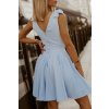V jednoduchosti je krása, a pri týchto hladkých šatách to určite platí. Véčkový výstrih je vpredu aj na chrbte. Na pleciach sa viažu na mašle, ktoré si prispôsobite podľa seba. Sukňa je jemne nariasená. Zapínanie na chrbte pomocou zipsu.
