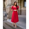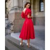 Tieto úžasné midi šaty Vám padnú do oka na prvý pohľad. Dominantné volány na rukávoch sú štýlové a trendy. Véčkový výstrih je spredu aj zozadu. Šaty nie sú na prsiach vystužené. Midi sukňa je padavá bez tylovej výstuže. Zapínajú sa zozadu na zips.
