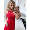 Dlhé spoločenské šaty zdobené krajkou a kamienkami z Vás urobia kráľovnú. Vrch šiat je z tylu, na ktorom je vyšívaná čipka doplnená kamienkami. Šaty sú na prsiach vystužené, čo oceníte najmä preto, že šaty čiastočne odhaľujú chrbát. Ľahučká sukňa je dlhá, padavá a má spodnicu. Zapínanie na chrbte pomocou zipsu.