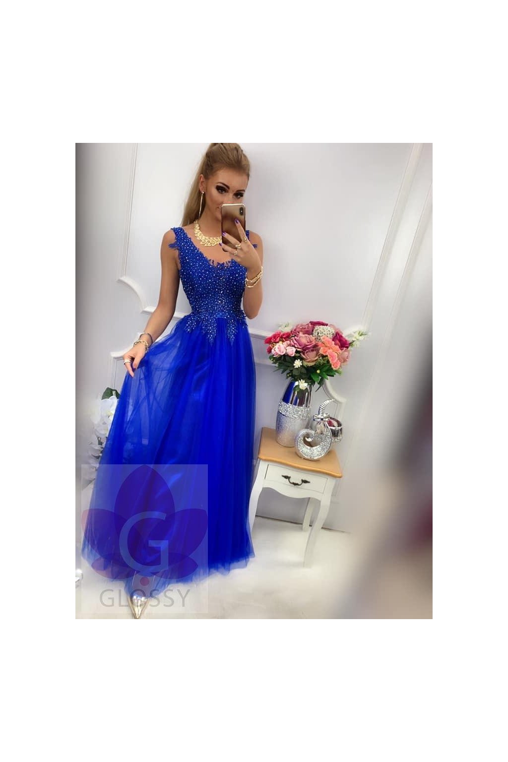 Dlhé kráľovsky modré šaty s tylovou sukňou