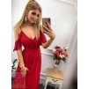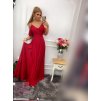 Dlhé spoločenské červené šaty s volánmi
