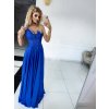Dlhé spoločenské kráľovsky modré šaty s vyšívanou čipkou