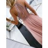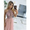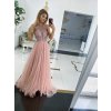 Dlhé spoločenské ružové šaty s kamienkami a tylovou sukňou