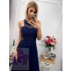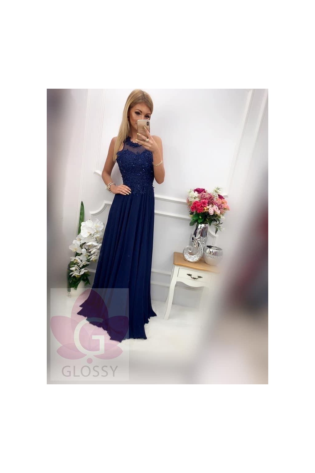 Dlhé spoločenské šaty zdobené krajkou a kamienkami z Vás urobia kráľovnú. Vrch šiat je z tylu, na ktorom je vyšívaná čipka doplnená kamienkami. Šaty sú na prsiach vystužené, čo oceníte najmä preto, že šaty odhaľujú chrbát. Ľahučká sukňa je dlhá, padavá a má spodnicu. Zapínanie na chrbte pomocou zipsu.
