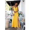 Dlhé šaty na tenké ramienka v sebe spájajú jednoduchosť a krásu. Príjemný, hladký materiál poteší Vašu pokožku. Šaty majú véčkový výstrih a na prsiach nie sú vystužené. Sukňa je dlhá, padavá a na jednej strane vysoko rozstrihnutá. Zapínanie na chrbte pomocou zipsu. Súčasťou šiat je opasok.