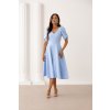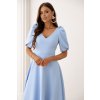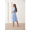 Blankytne modré midi šaty s nariasenými rukávmi