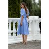 Blankytne modré midi šaty s puff rukávmi