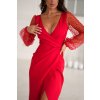 Červené šaty s flitrovými rukávmi