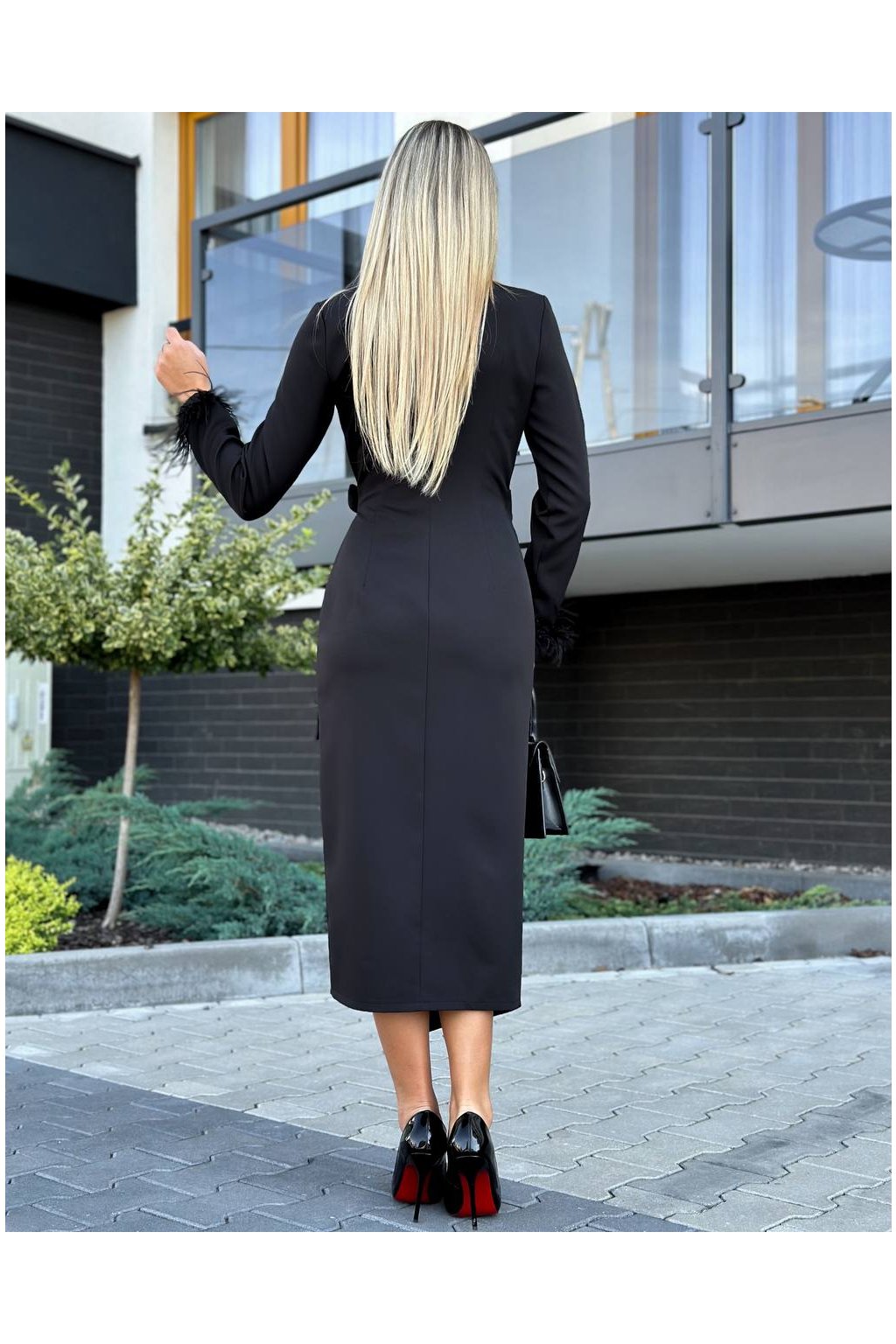 Černé zavinovací šaty s peříčky