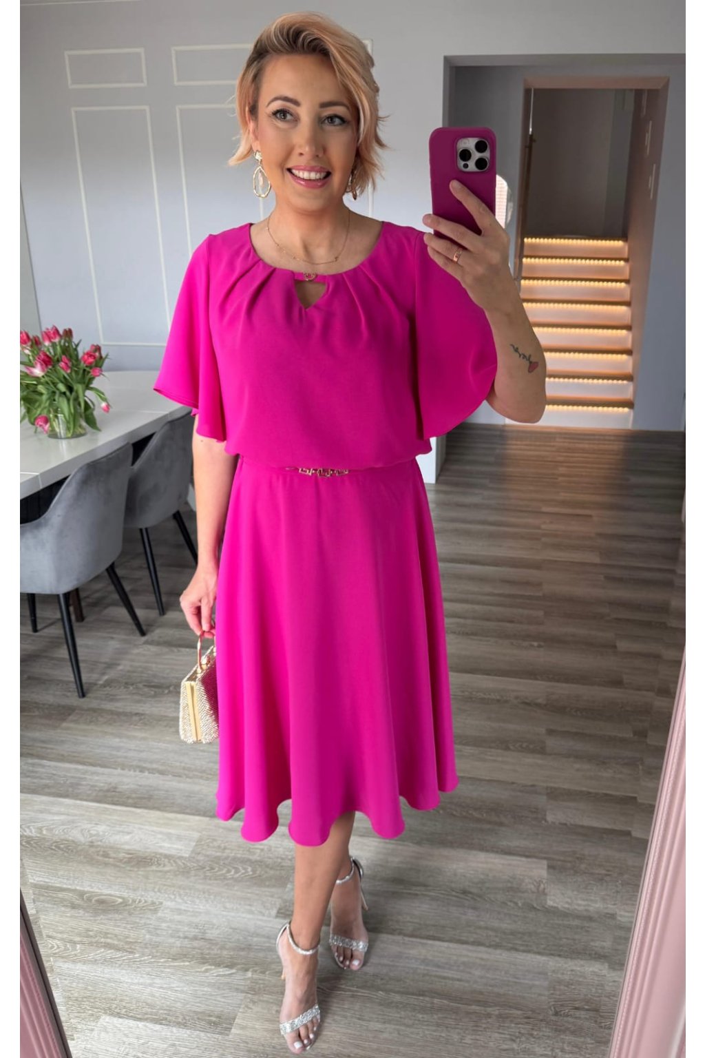 Cyklámenové šaty se zlatým zdobením
