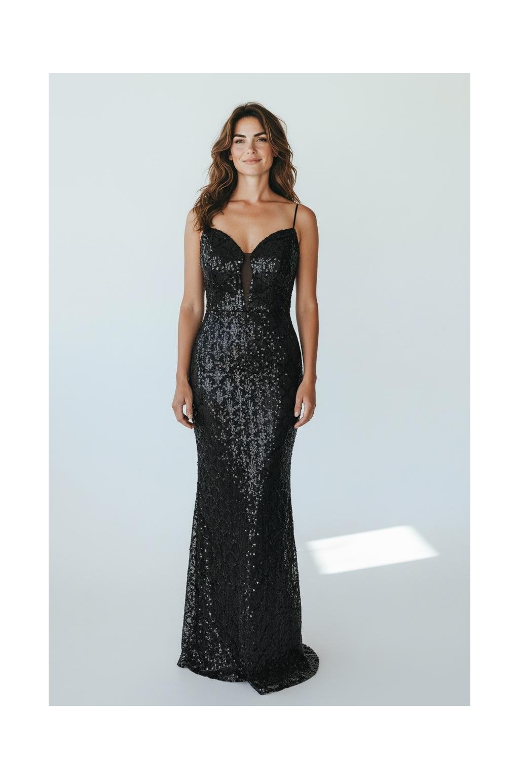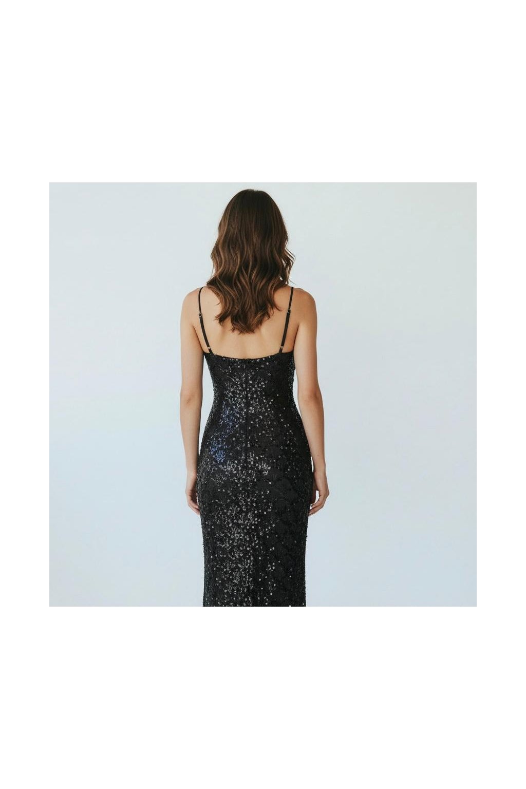 Dlouhé společenské černé flitrované šaty na ramínka