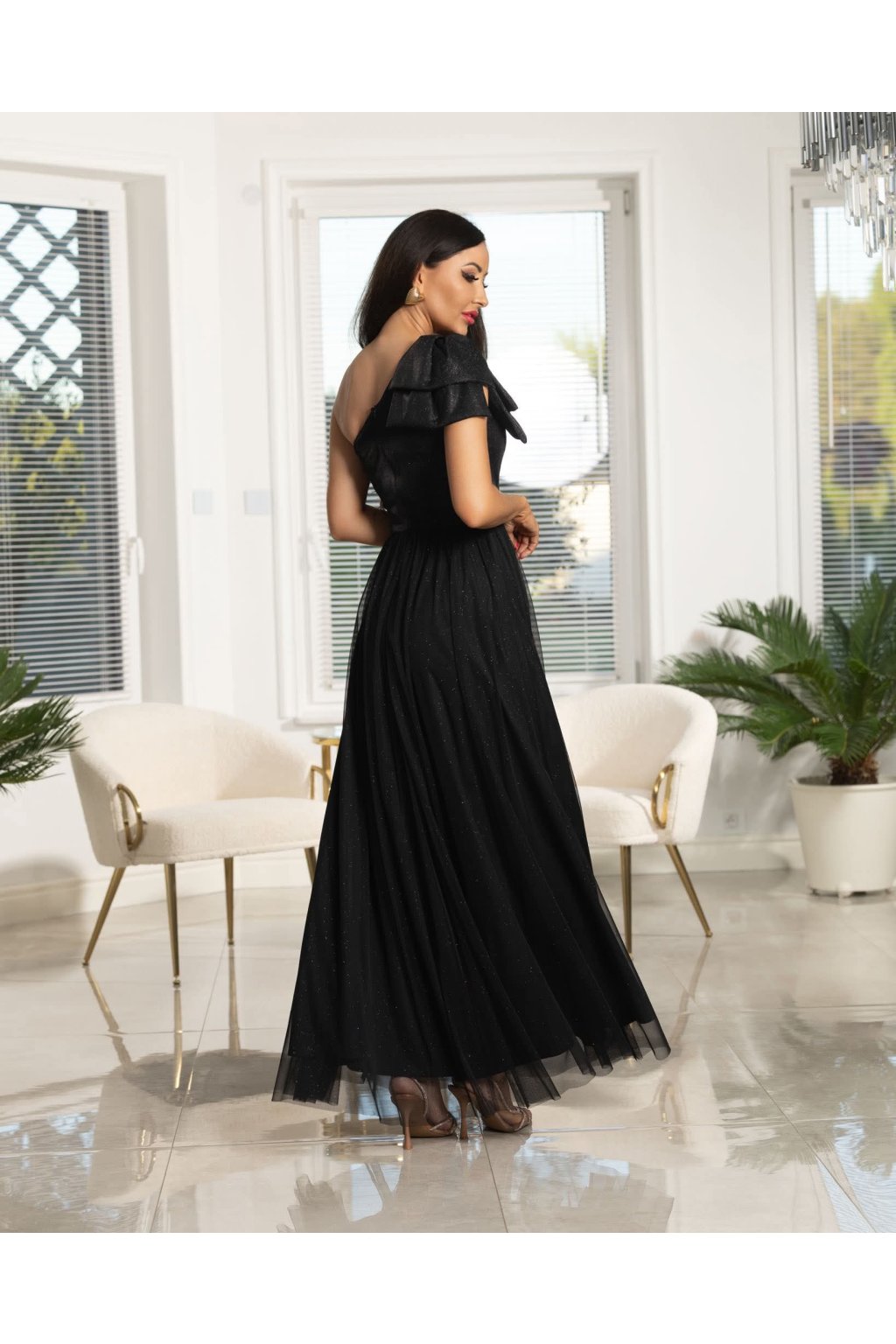 Dlouhé společenské černé třpytivé šaty na jedno rameno