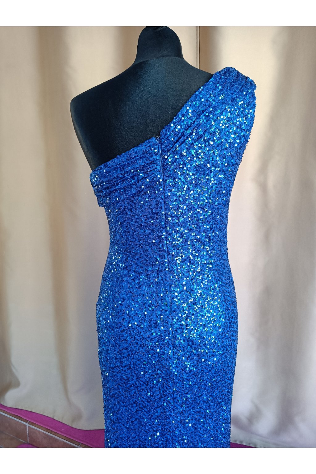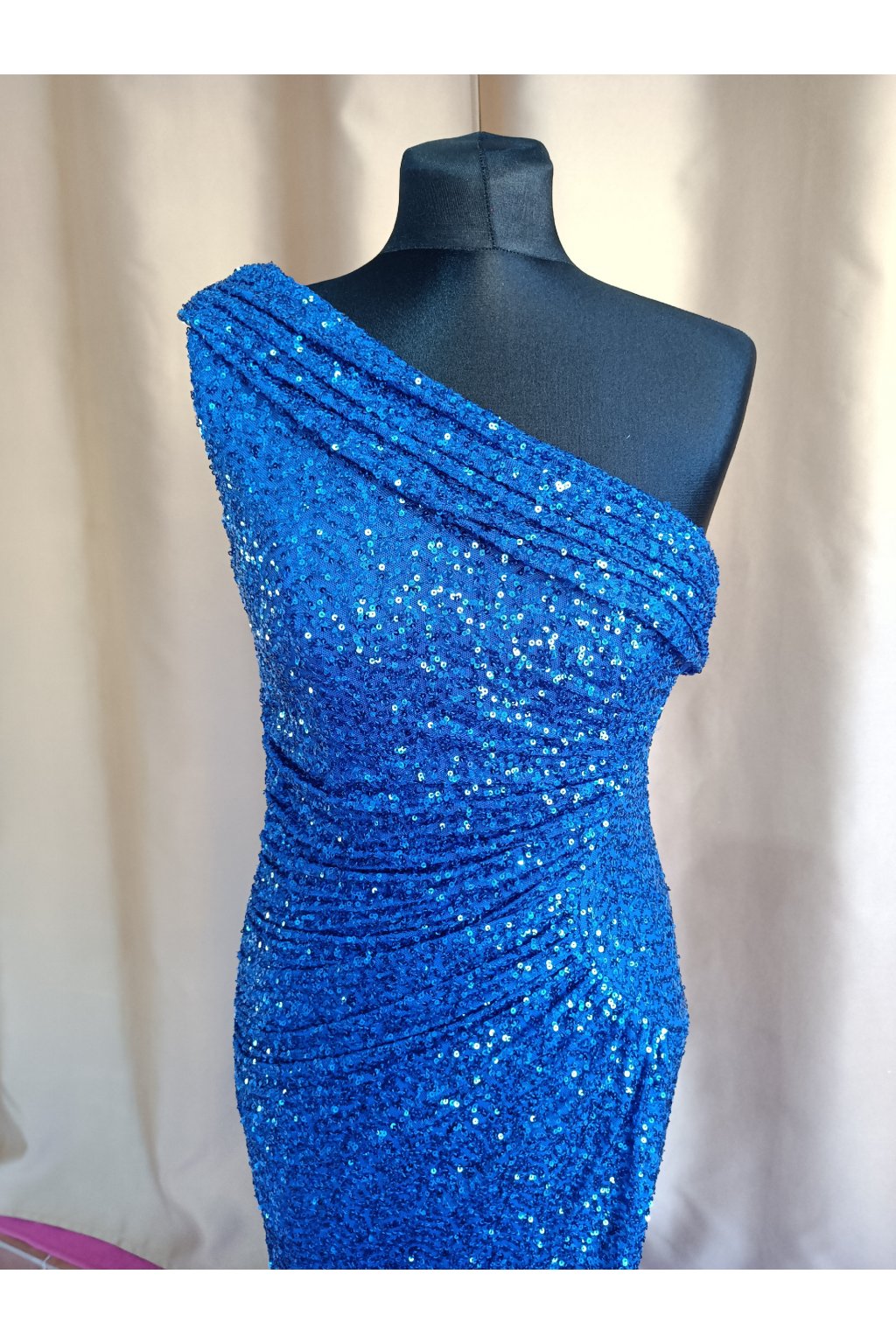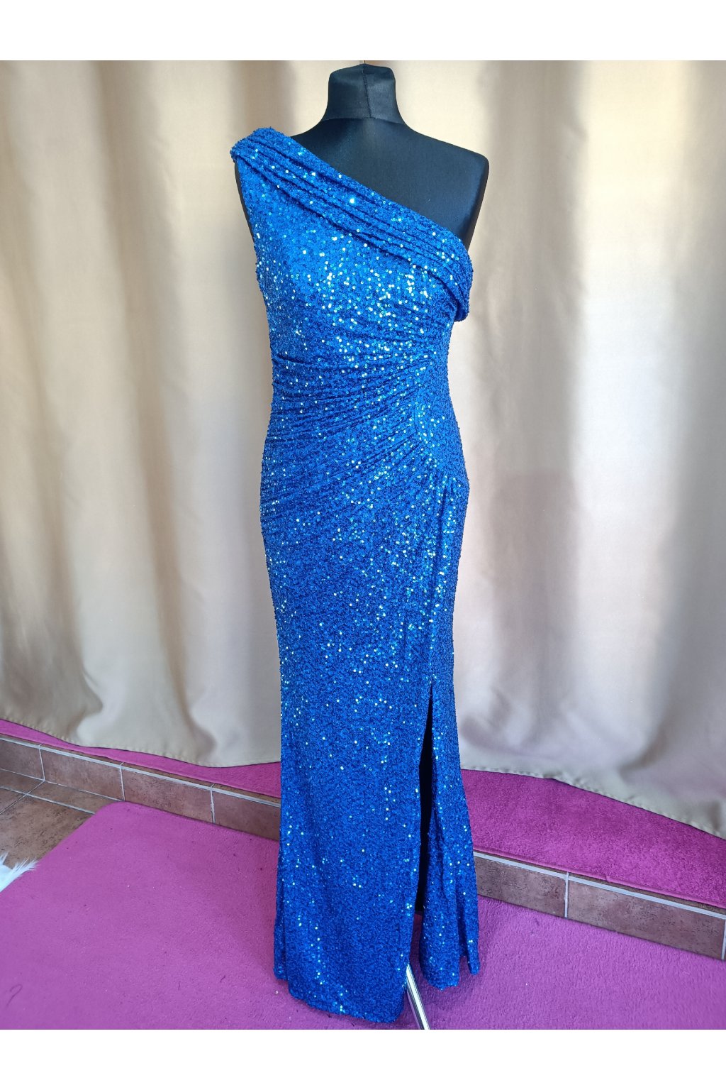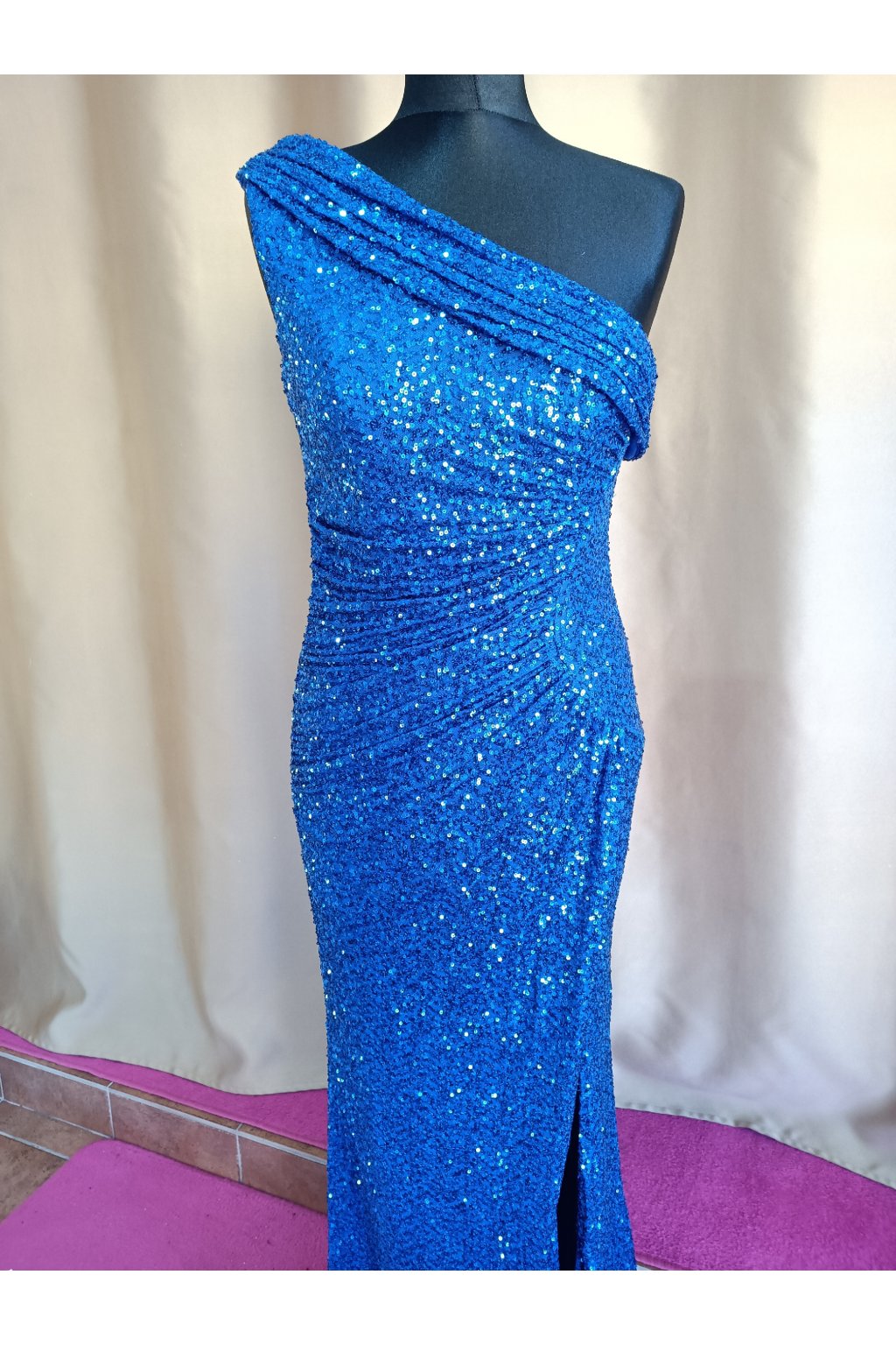 Dlouhé společenské královsky modré flitrované šaty s řasením