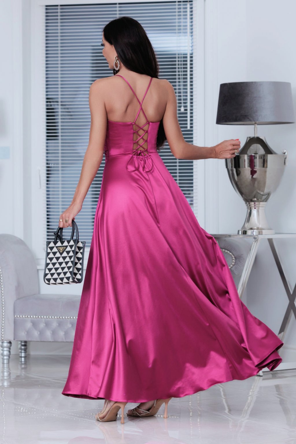 Dlouhé společenské saténové cyklámenové šaty na vázání