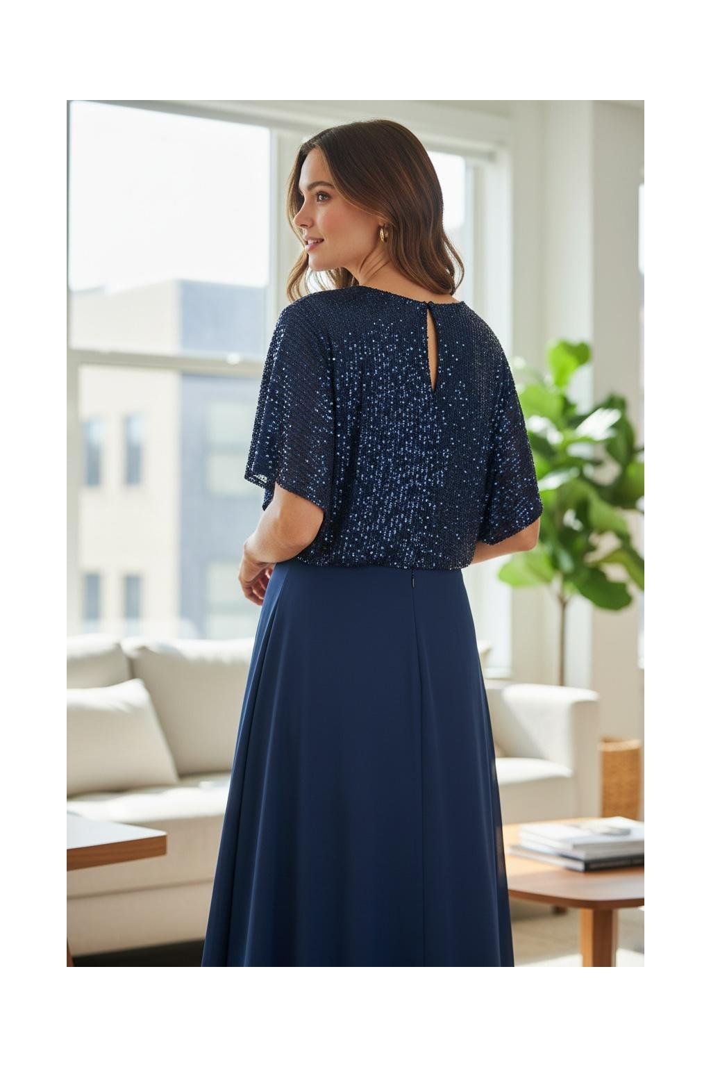 Jedinečné šaty s flitrovaným vrškem jsou skvělou volbou na plesy, oslavy či jiné společenské události. Celá hora je flitrovaná a mají jemný rukáv. V pase je zlatá ozdoba. Sukně je lehounká, padavá a má spodnici. Zapínají se zezadu na zip a na knoflík na zádech.