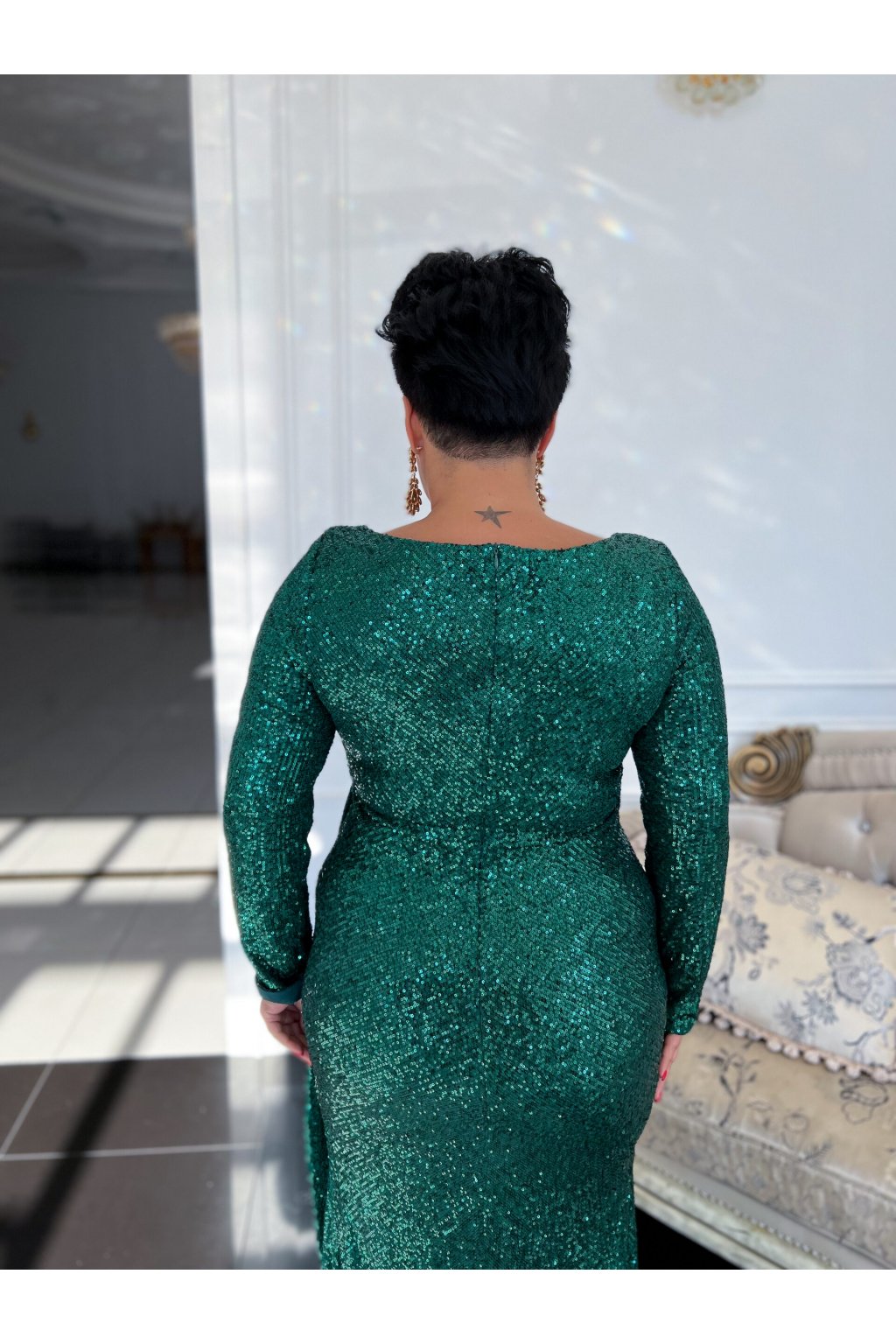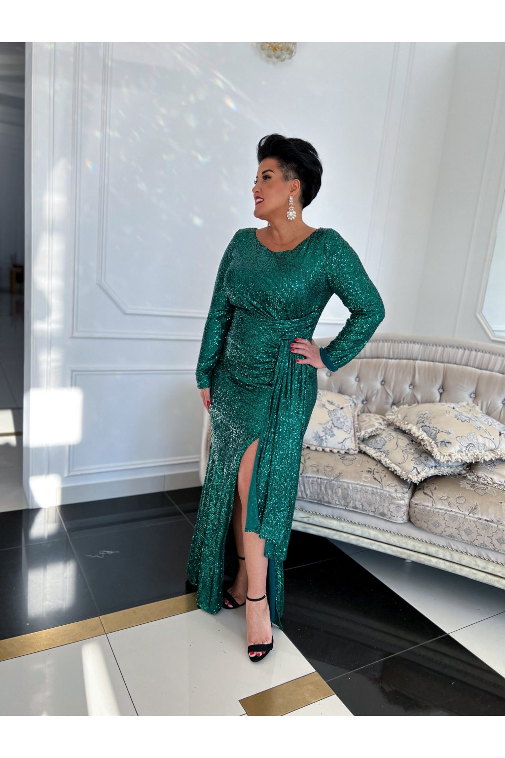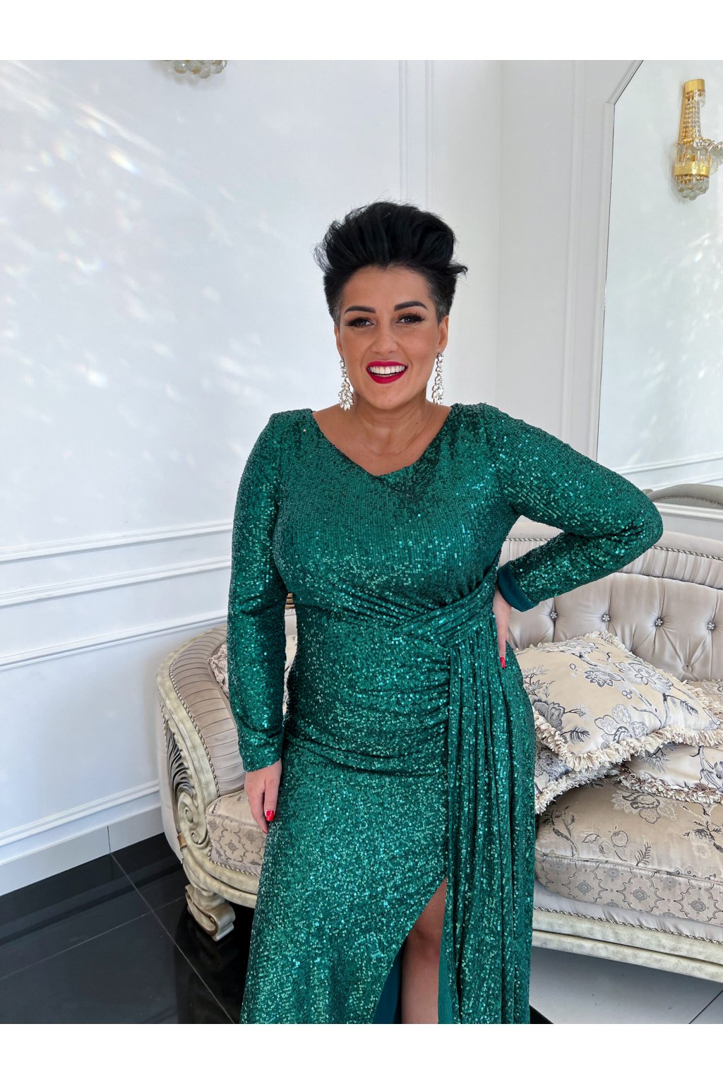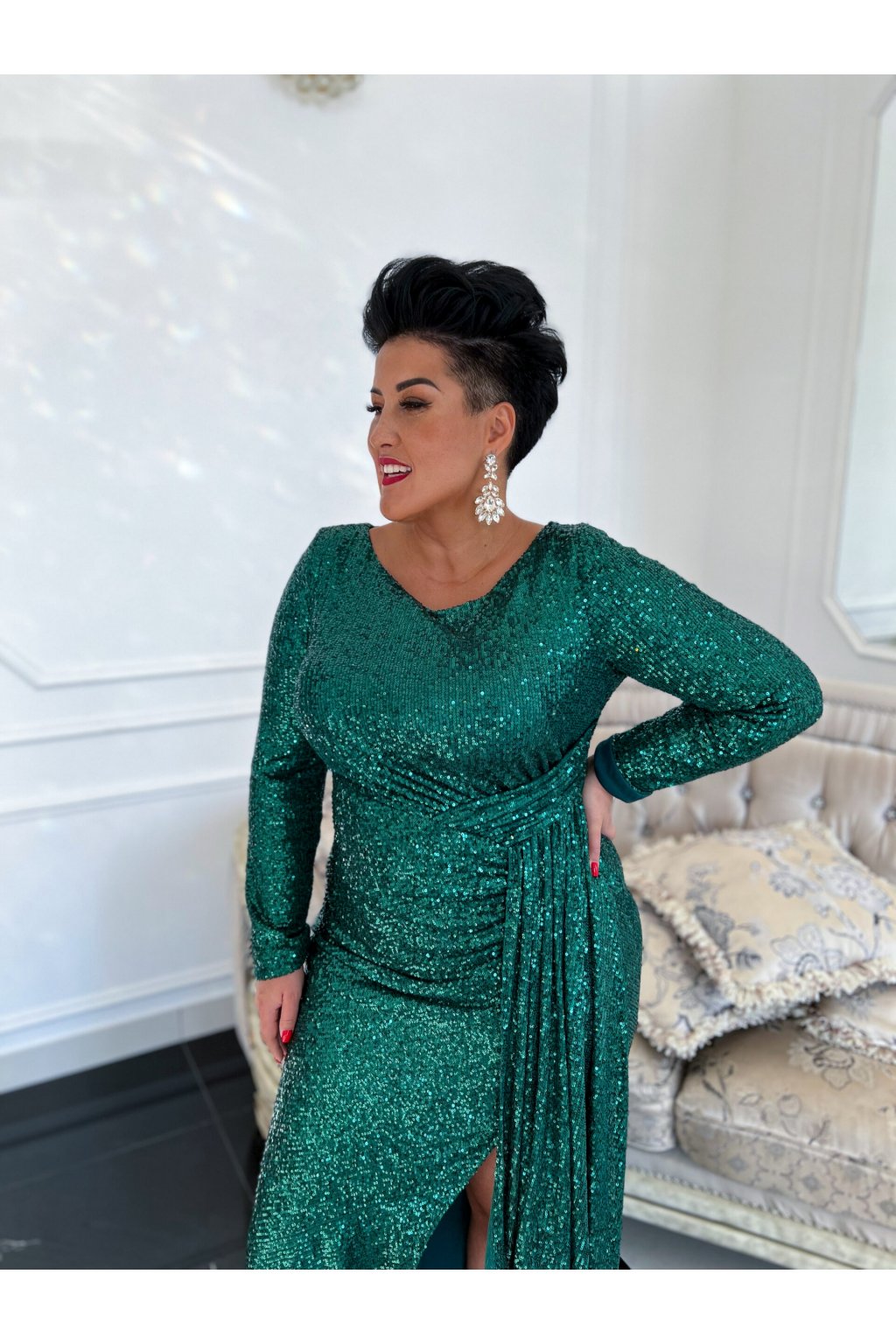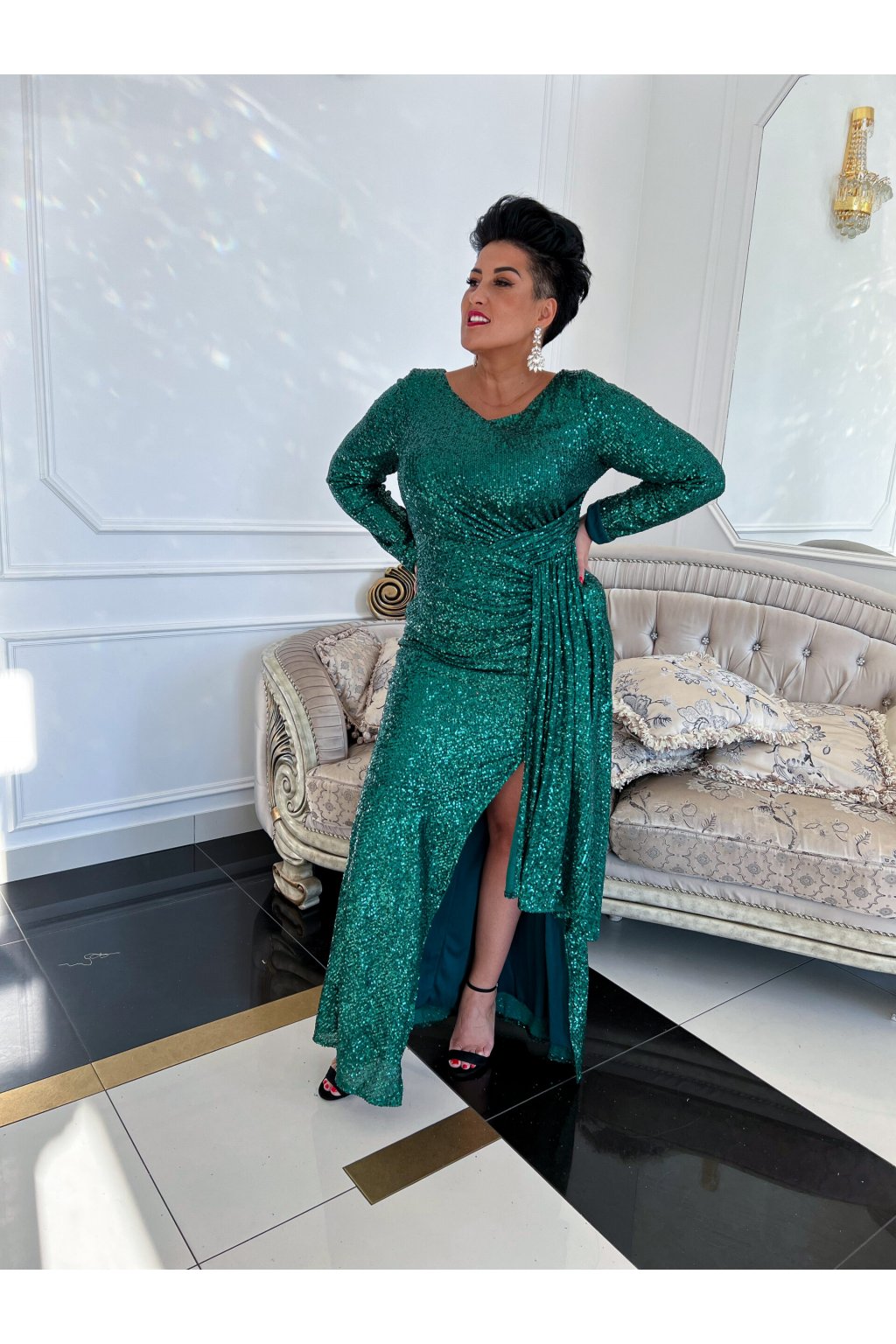 Dlouhé společenské zelené flitrované šaty s rukávy