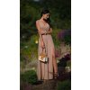 Exkluzivní dlouhé šaty s třpytkami vás udělají jedinečnou a nepřehlédnutelnou, ať už na svatbě nebo jiné události. Horní část šatů je na silnější ramínka. Výstřih šatů je lemovaný výstřihem do V s jemným volánkem. Sukně je dlouhá, spadající a na jedné straně má rozparek. K šatům jsou dva pásky, jeden v barvě šatů a druhý v černé barvě.