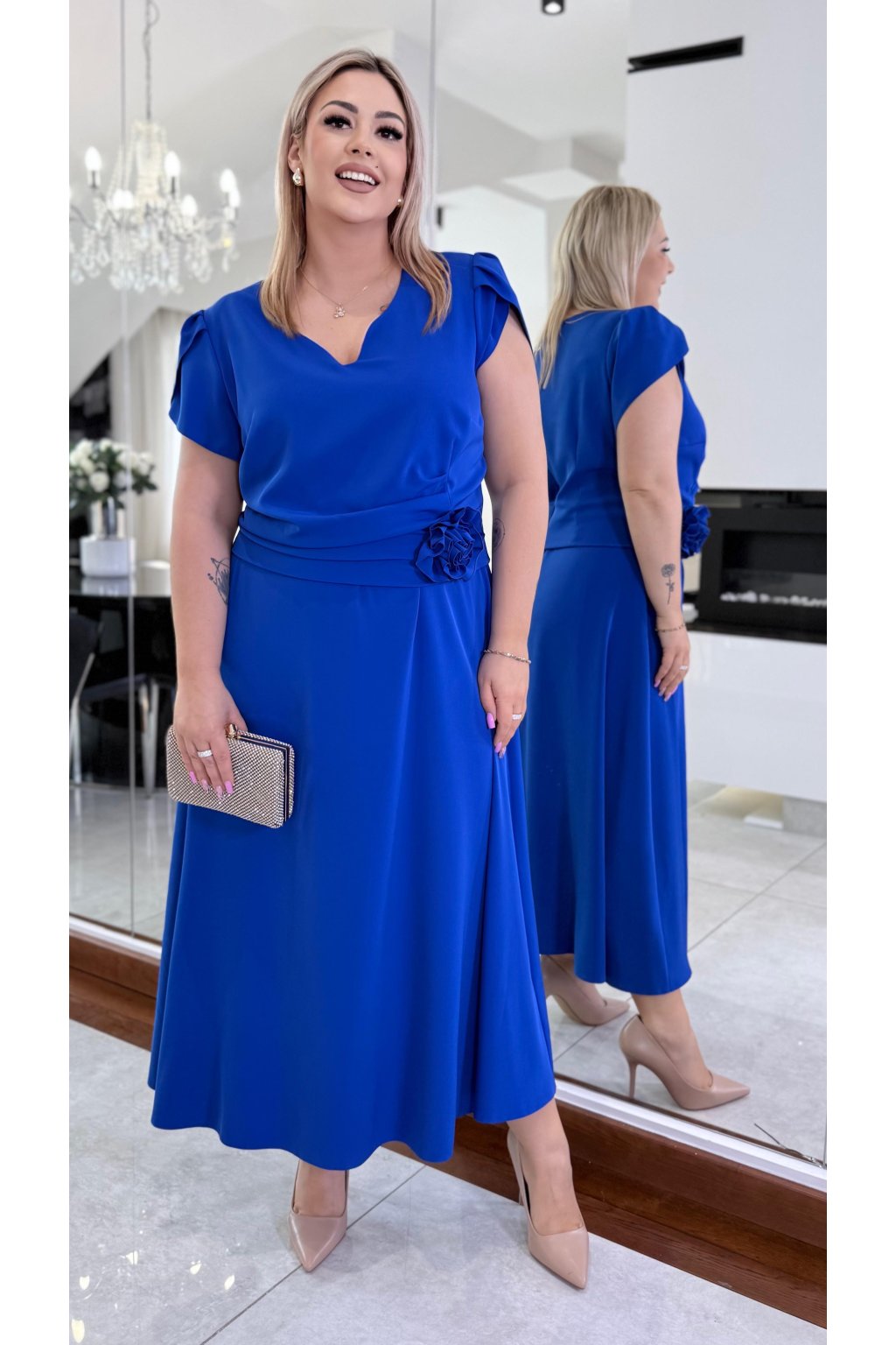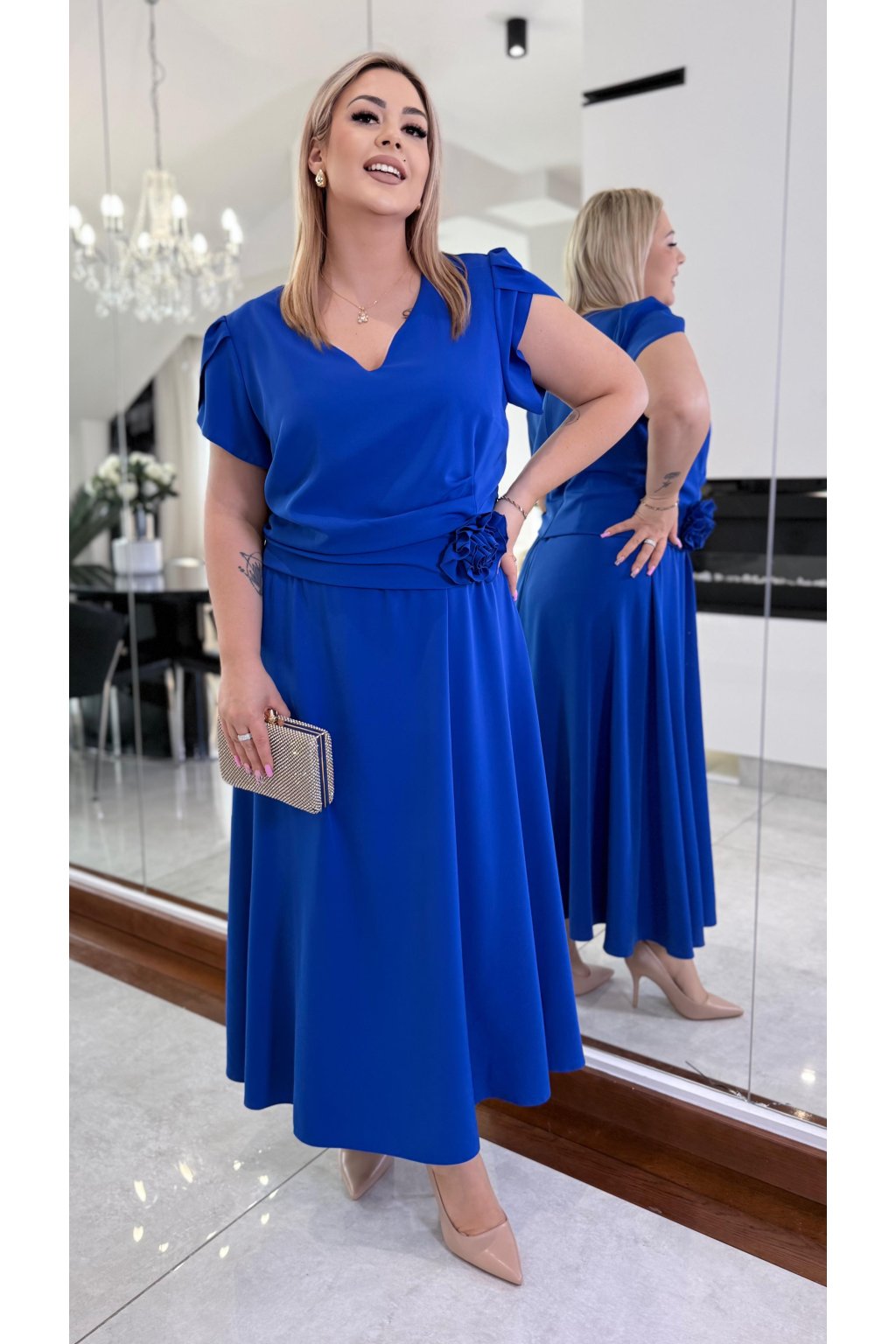 Tyto okouzlující šaty v sytém zeleném odstínu jsou ideální volbou pro ženy, které milují eleganci s nádechem romantiky. Jemně splývavý střih krásně zvýrazní siluetu a zároveň poskytuje maximální pohodlí při nošení. Výstřih do tvaru V lichotí dekoltu a krátké rukávy dodávají šatům lehkost. Dominantním detailem je ozdobný květ v pase, který podtrhuje ženskost a dodává modelu jedinečný charakter.