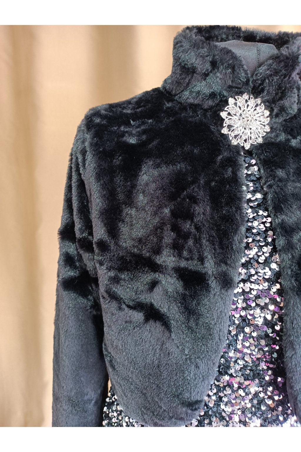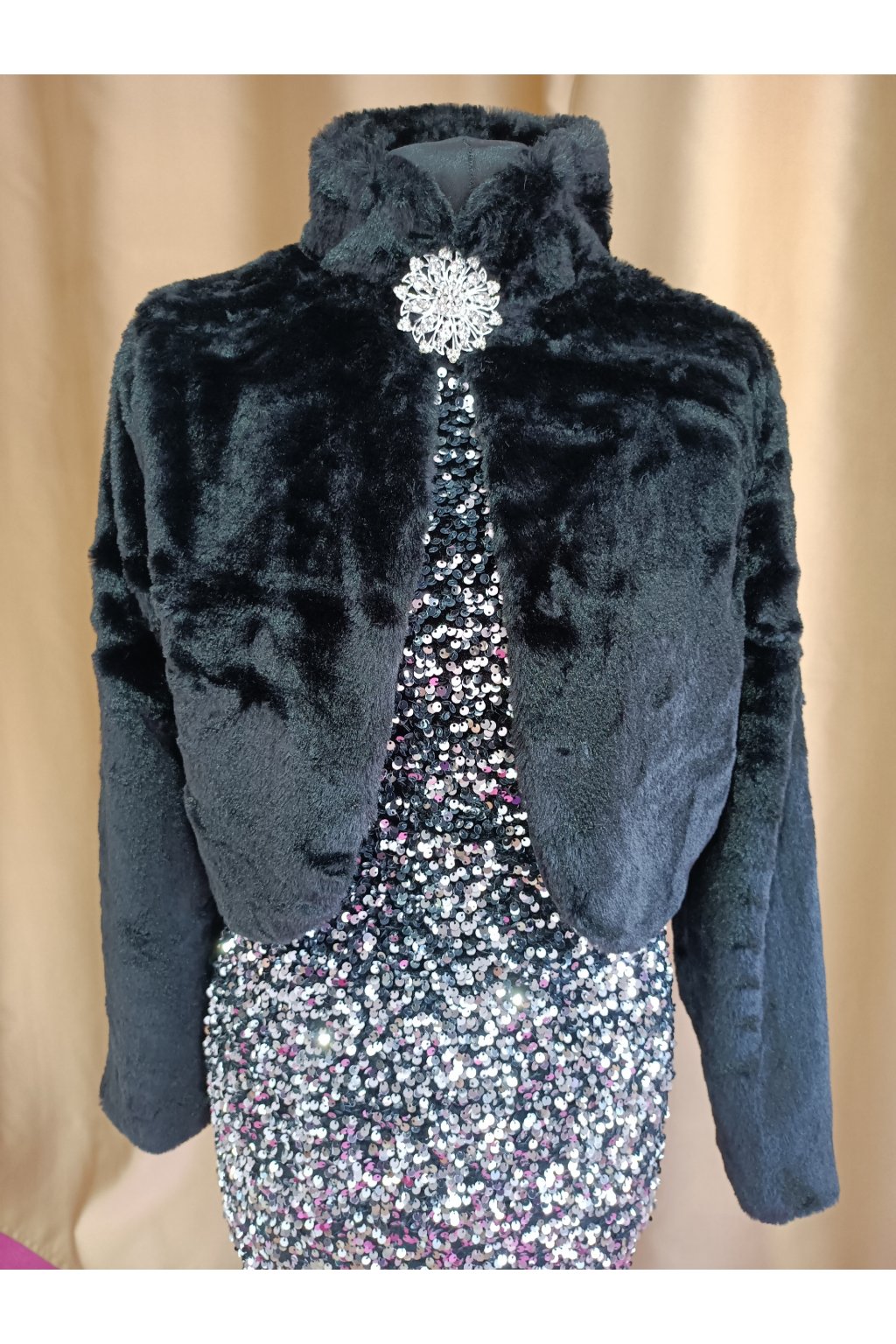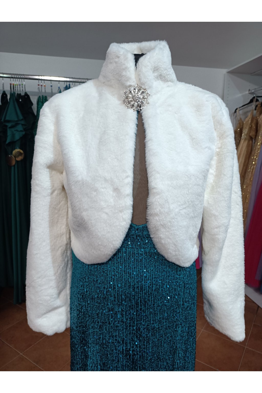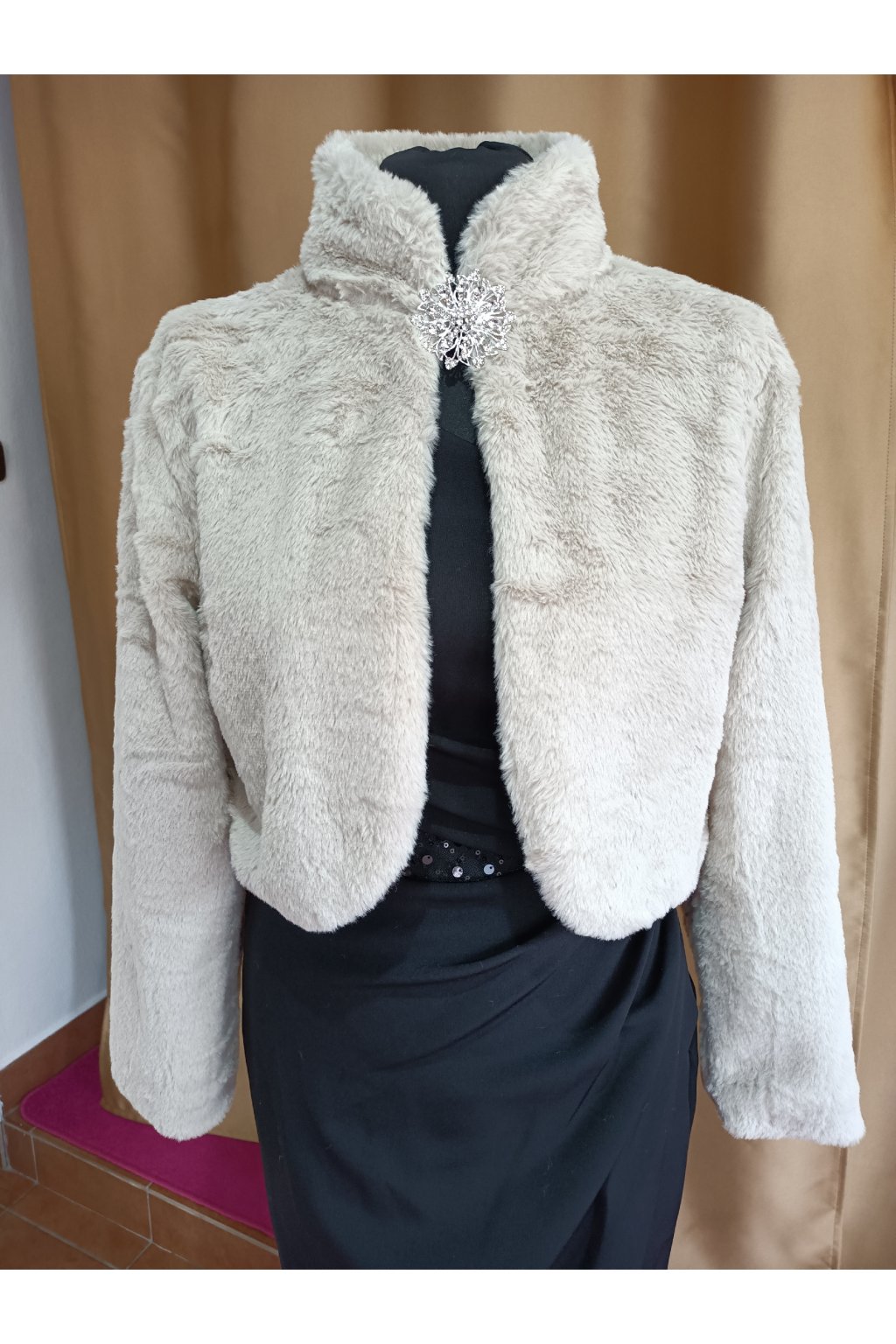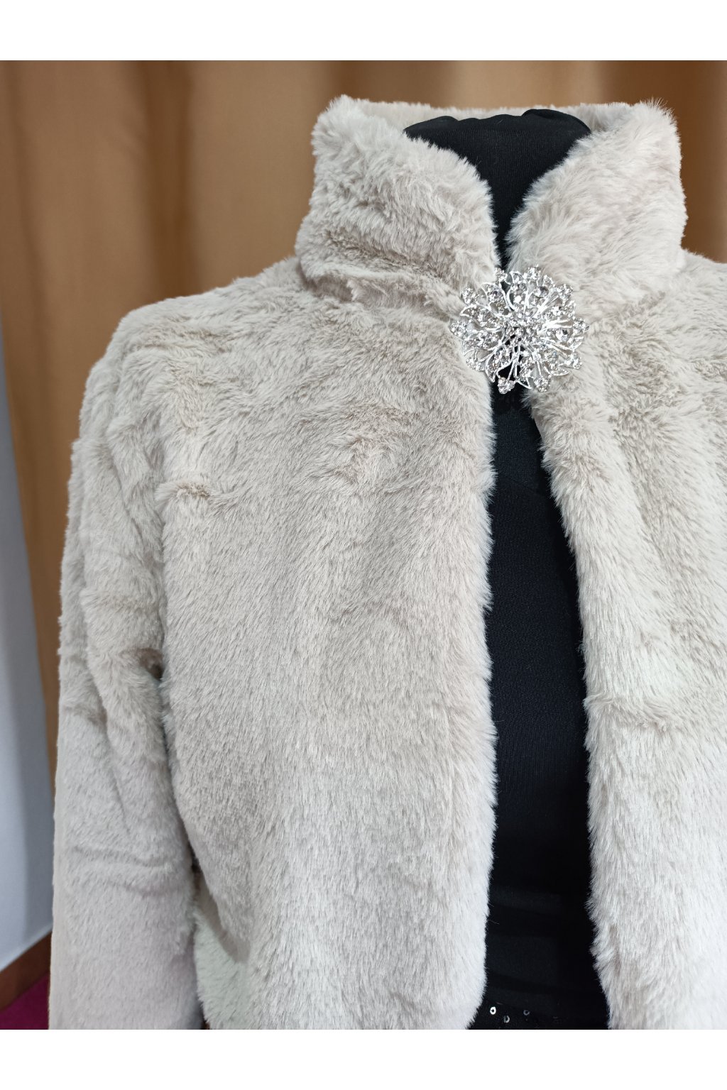 Doplňte si svůj outfit na výjimečných událostech v chladných dnech o tento okouzlující kousek! Kožíšek z umělé kožešiny šaty krásně doplní a zároveň vás zahřeje. Má dlouhý rukáv a na krku stojáček. Je podšitý. Zapínání brož. Délka do pasu.