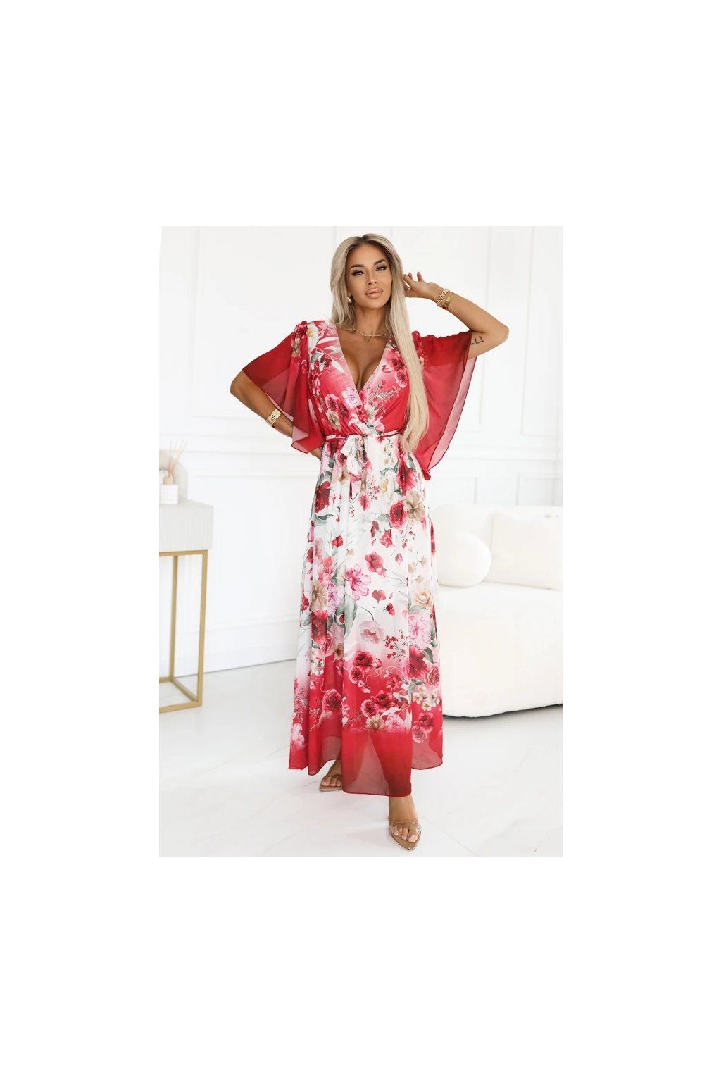 Dlhé červené kvetinové šaty