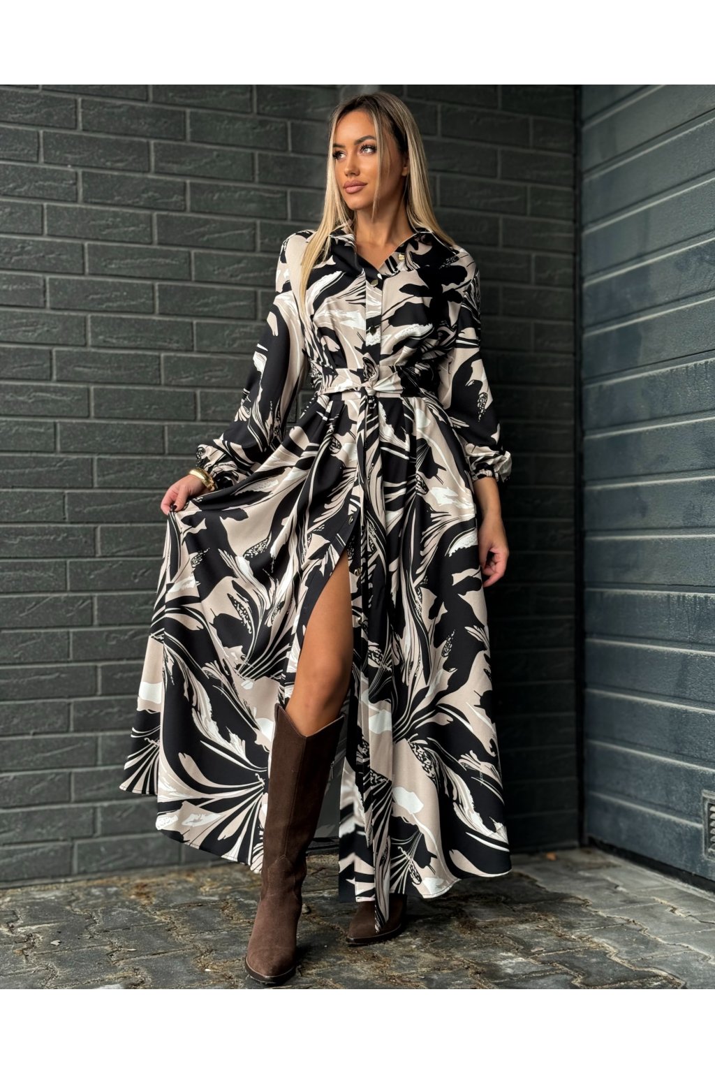 Dlhé košeľové šaty so vzorom
