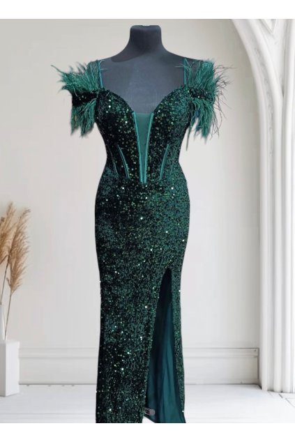 V týchto dlhých lesklých spoločenských šatách budete ako z rozprávky. Celé šaty sú z ľahučkého materiálu, látka šiat je trblietavá ale trblietka sú zapracované v látke, takže neopadávajú. Šaty majú jemný rukáv a prekladaný, véčkový výstrih. Sukňa je dlhá, padavá a na jednej strane má rázporok. Zapínanie na chrbte pomocou zipsu. Súčasťou šiat je opasok.