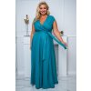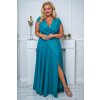 Dlhé spoločenské azúrové šaty s jemným rukávom