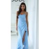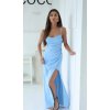 Dlhé spoločenské bledomodré priliehavé šaty na ramienka