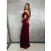 Dlhé spoločenské bordové zamatové šaty s padnutými ramenami