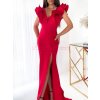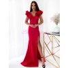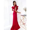 Dlhé spoločenské červené priliehavé šaty s volánmi
