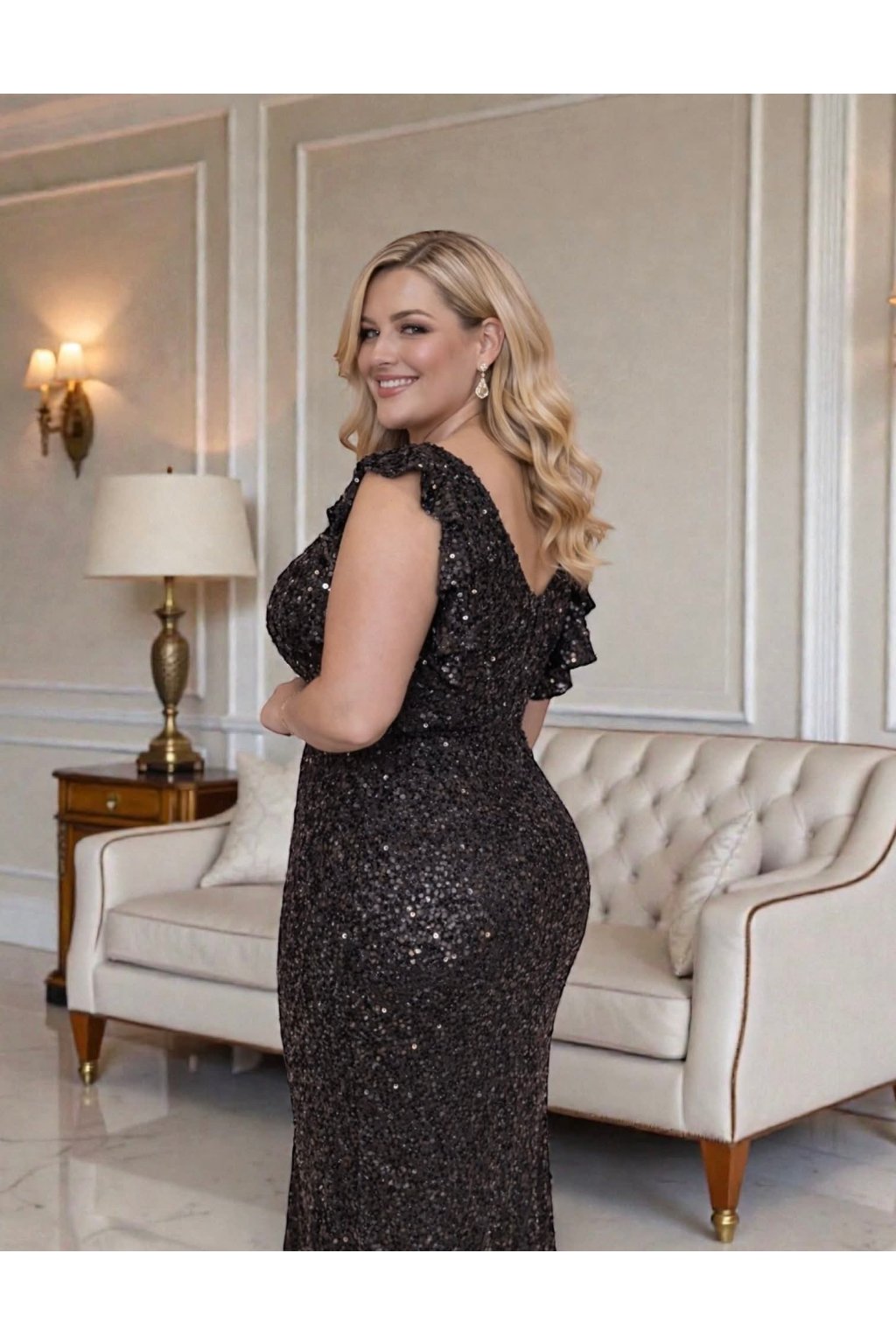 V týchto žiarivých flitrovaných šatách pritiahnete na seba všetkú pozornosť! Či už vás čaká večierok, ples alebo oslava, tieto šaty sa hodia na všetko. Šaty majú dve vrstvy - mäkkú podšívku a druhá vrstva je z flitrov. Sú na hrubšie ramienka a vpredu aj vzadu majú véčkový výstrih. Ramená sú zdobené jemnými volánmi. Na prsiach sú šaty vystužené. Sukňa je priliehavá. Zapínajú sa zozadu na zips.