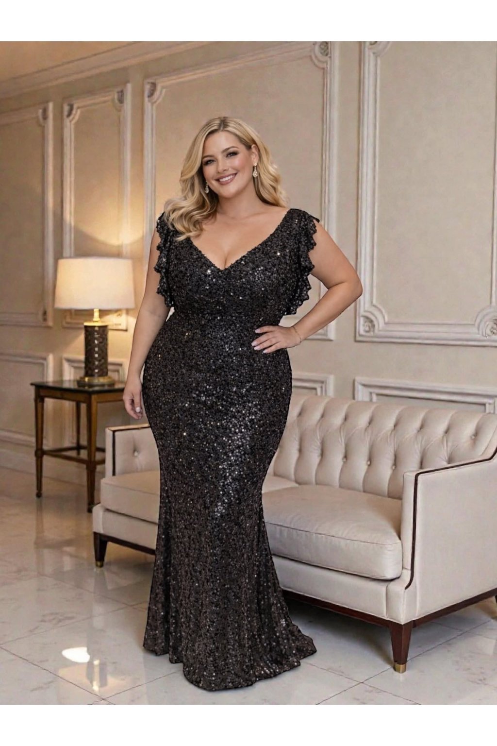 Dlhé spoločenské čierne flitrované šaty s volánmi