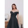 Dlhé spoločenské čierne šaty s padnutými ramenami