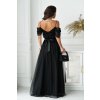 Dlhé spoločenské čierne tylové šaty so saténovým opaskom