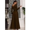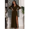 Dlhé spoločenské čokoládové trblietavé šaty s rukávom