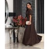 Dlhé spoločenské čokoládové trblietavé šaty s rukávom