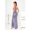 Dlhé spoločenské fialové flitrované šaty na ramienka