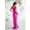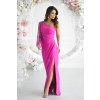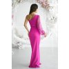 Dlhé spoločenské fuchsiové flitrované šaty na jedno rameno