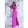 Dlhé spoločenské fuchsiové šaty s volánom na jedno rameno