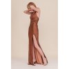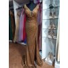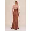 Dlhé spoločenské medené flitrované šaty s rázporkom