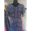 Dlhé spoločenské medeno-modré šaty s volánovým rukávom