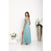 Dlhé spoločenské mentolové šaty s padnutými ramenami