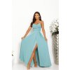 Dlhé šaty na tenké ramienka v sebe spájajú jednoduchosť a krásu. Šaty sú z hladkého, ľahkého materiálu. Majú oválny výstrih a na prsiach nie sú vystužené. Sukňa je dlhá, padavá a na jednej strane má rázporok. Na chrbte sa viažu.