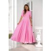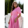 Dlhé spoločenské ružové šaty s puff rukávmi