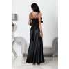 Dlhé spoločenské saténové čierne šaty na ramienka
