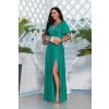 Dlhé spoločenské smaragdovo zelené trblietavé šaty s rukávom
