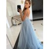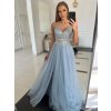 Dlhé spoločenské strieborné šaty s flitrami a tylovou sukňou