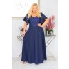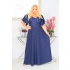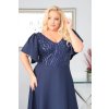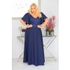 Dlhé spoločenské tmavomodré šaty s volánovým rukávom