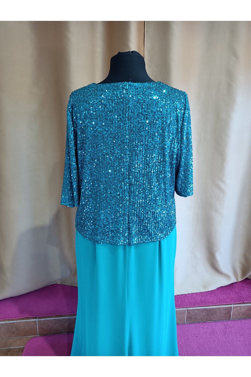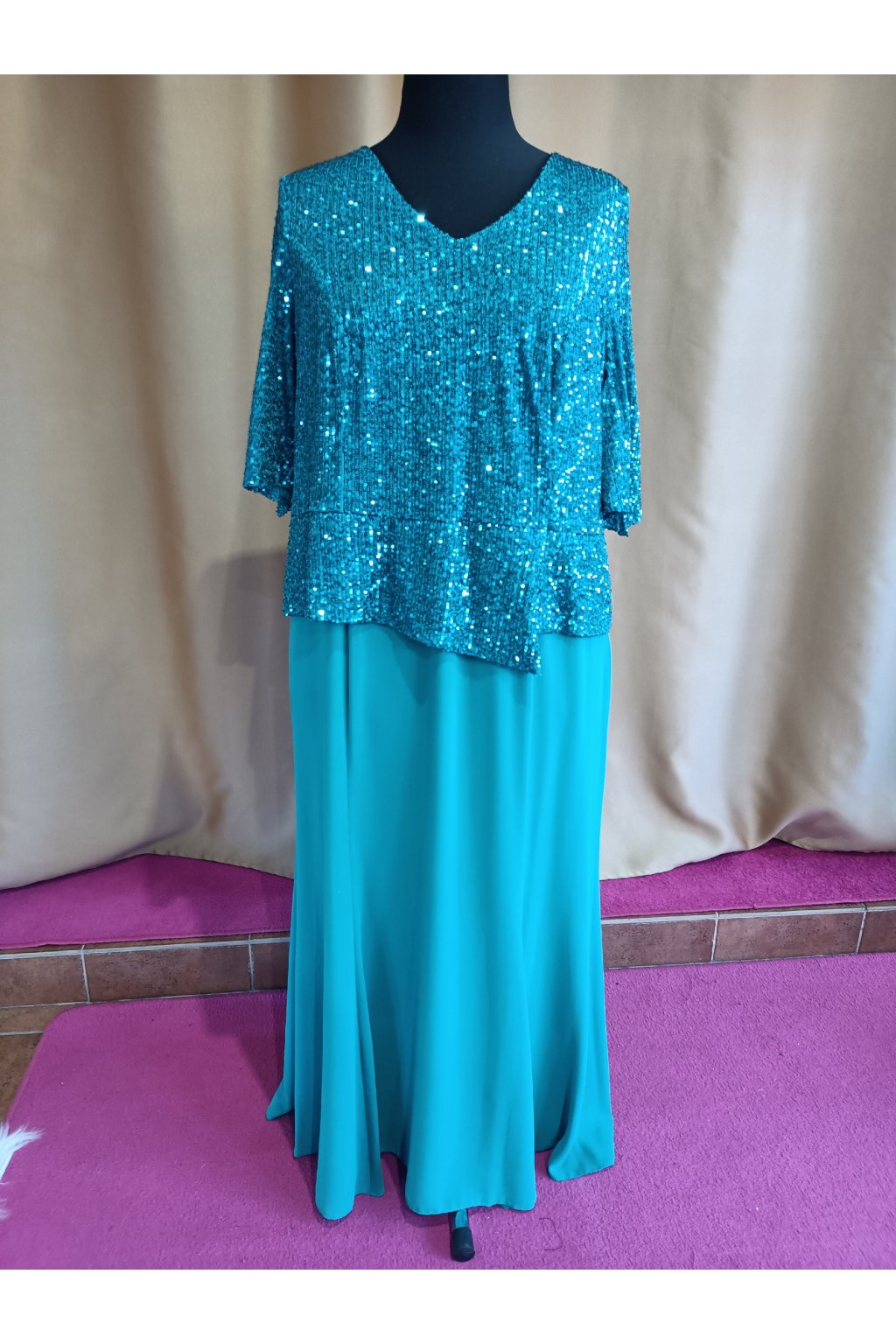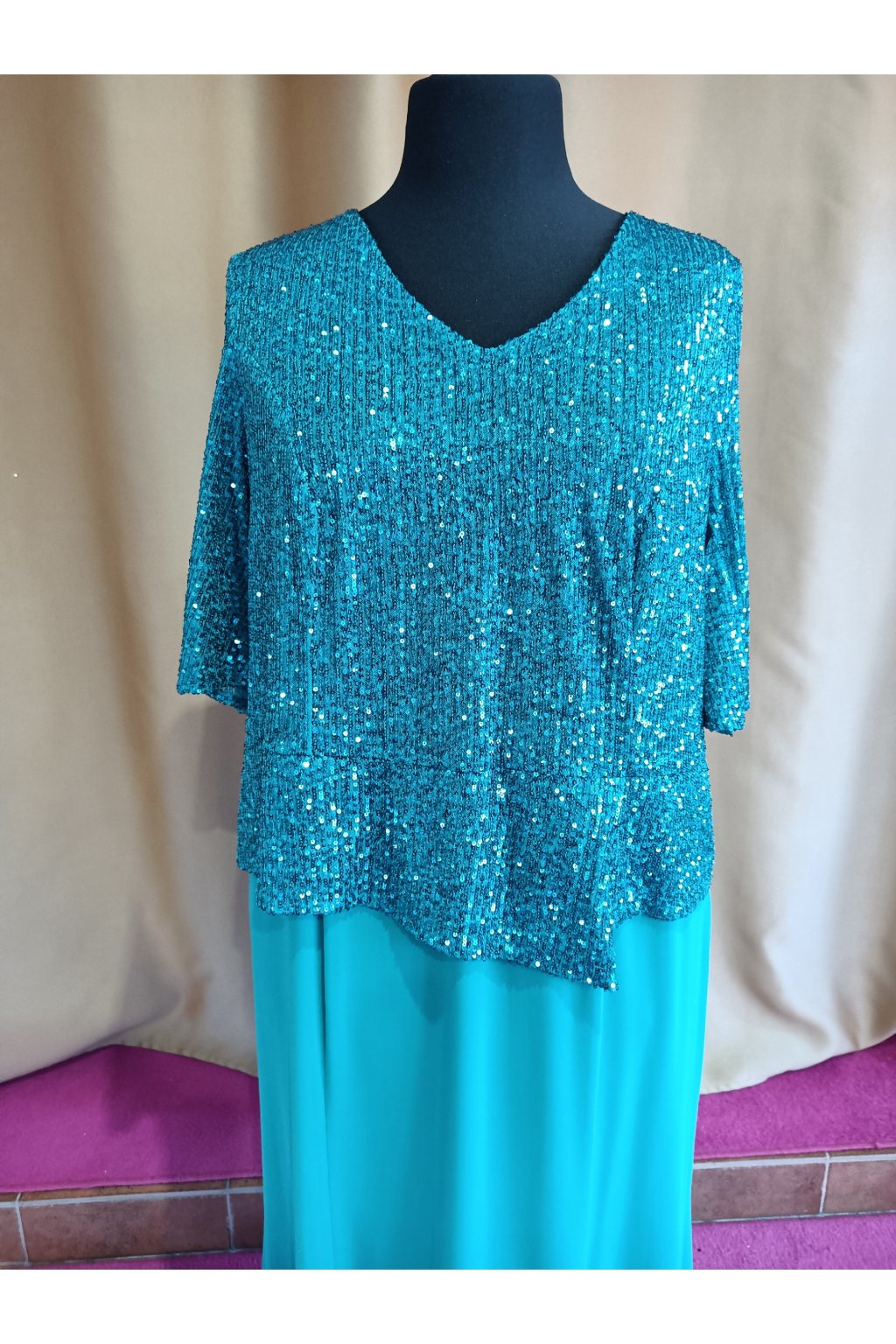 Dlhé spoločenské tyrkysové šaty s flitrami